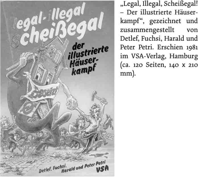 Das Comicbuch „Legal, Illegal, Scheißegal! – Der illustrierte Häuserkampf“ (VSA-Verlag, Hamburg, 1981), dessen Inhalt über die linksalternative West-Berliner „Instandbesetzer“-Szene berichtete, erzählt ein Stück Zeitgeschichte: Den Kampf von Wohnungsbaumanagern, Städteplanern sowie der Polizei auf der einen Seite und Bürgerinitiativen, die zum Abbruch vorgesehene Häuser besetzten, auf den anderen Seite.