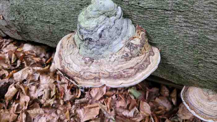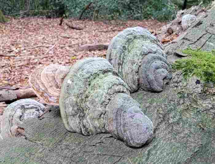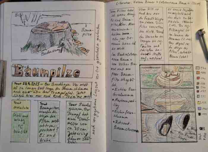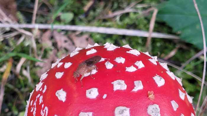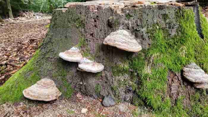 Dort an dieser Stelle angekommen, war von den umgekippten Buchen nur noch ein paar Reste zu sehen. Diese waren allerdings übersäht mit Baumpilzen. Also ein guter Ort für Insekten.