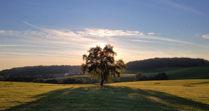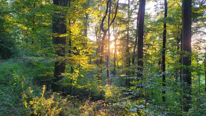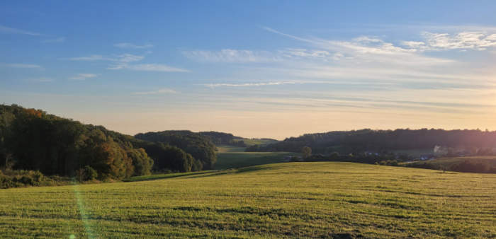 Mittlerweile war die Temperatur von 19 auf 14 Grad abgefallen. Die Sonne war hinter dem Hügel verschwunden. Ich wollte noch ein wenig laufen. Ging erstmal den Sünger Berg hinab. Erst nach 10 Minuten, oben bei Oberbüschem, kam ich erst wieder in die wärmende Sonne.