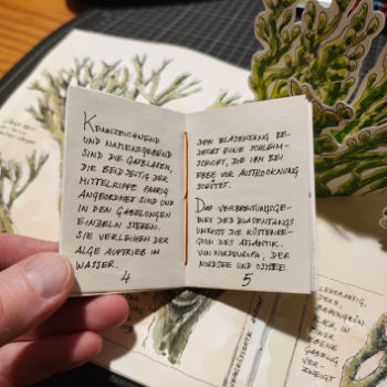 Als Kind und Jugendlicher habe ich gerne und viel gezeichnet. Mir war es immer ein Bedürfnis, mich kreativ zu beschäftigen. Es lag also nahe, dass ich einen gestalterischen Beruf ergreife und so bin ich Mediengestalter in Fachrichtung Print geworden. Da ich dort zu 100% digital arbeite, habe ich zum Ausgleich in meiner Freizeit immer nach handwerklichen Hobbys gesucht. Ich habe Holz geschnitzt, Bänder gewebt, Kleidung genäht, Leder bearbeitet und einiges mehr. Vor fünf Jahren habe ich Papier und Bleistift wieder zur Hand genommen und festgestellt, dass das Zeichnen, mit der Hand auf Papier, für mich ein perfektes Gegengewicht zur Computerarbeit ist. Im Internet bin ich auf die Urban Sketcher Szene gestoßen und freue mich seitdem über das Zeichnen mit gleichgesinnten. Nach einem Urban Sketch im Naturhistorischen Museum in Kiel ist mir bewusst geworden, dass mir das Zeichnen organischer Strukturen besonders gut gefällt. Bei der Recherche zum Zeichnen von Natur konnte ich feststellen, dass es auch eine schnell wachsende Community von Nature Journalern gibt und so habe ich nach dem nächsten Club in meiner Nähe gesucht und bin in Kiel fündig geworden. Seitdem treffe ich mich regelmäßig mit diesen großartigen, netten Menschen zum gemeinsamen Journaln und Plaudern.