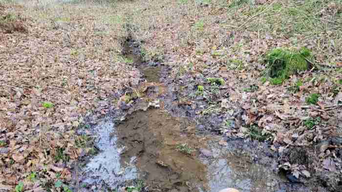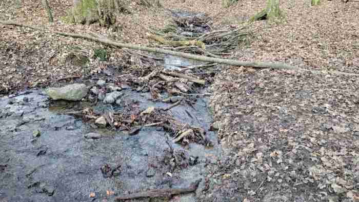 Ich ging weiter zu einem kleinen Nebensiefen. Hier kommt das Wasser gerade von einer Weide und tröpfelt weiter zum Teich.