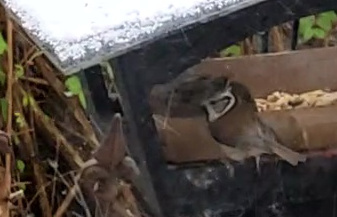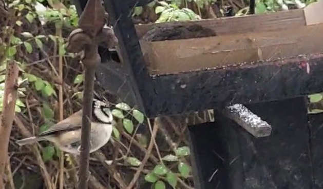 Der Schnee lockt die verschiedensten Vögel zum Futterhaus im Garten. Neben den üblichen Blau- und Kohlmeisen sowie Amseln, tummeln sich nun Gimpel, Buch- und Grünfinken, Ringel- und Türkentauben im Garten. Vereinzelt kommen Rotkelchen und Heckenbraunelle. Nun hab ich kurz ein Wintergoldhähnchen gesehen und ein Zaumkönig schaute kurz vorbei. Über längere Zeit sah ich nun eine Tannenmeise, die ich kurz für eine Kohlmeise hielt, und eine Haubenmeise.