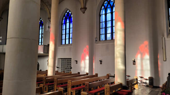 Ich ging zuerst um die Kirche und dann auch rein. Drinnen war niemand. Kalt war es dort.