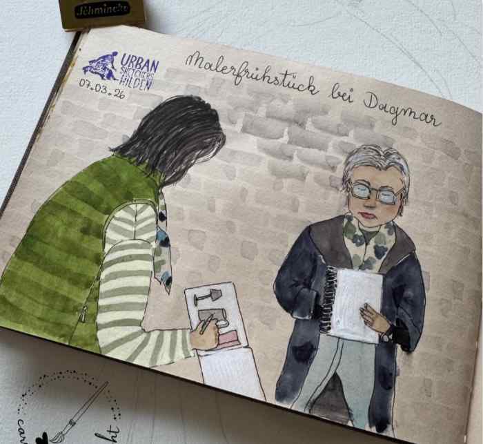 Ich besuchte Sketcher Treffen in Wuppertal, Hilden und Düsseldorf. Kurzer Hand gründete ich dann im Oktober 2025 die Urban Sketchers Solingen, ich habe einfach je einen Instagram- und Facebook-Account erstellt und los ging es.