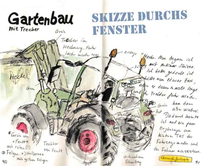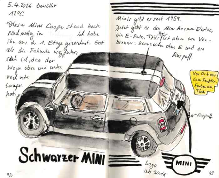Wenn ich nun 20 Jahre nach der Idee des Urban Sketching auf das Jahr 2007 zurückblicke, dann fällt mir ein, dass in dem Jahr auch das iPhone von Apple auf den Markt kam. Es wurde am 9. Januar 2007 in San Franzisko vorgestellt. Etwas später gab es diese Smartphones dann auch zu kaufen (in Europa ab November 2007). Schon ein paar Jahre zuvor gab es Mobiltelefone mit eingebauter Kamera, sodass immer mehr Leute immer und überall ihr Handy zückten und alles fotografierten. Eine schöne Sache! Mit dem iPhone und all den danach kommenden Smartphones wurde das Knipsen zu einer normalen Handbewegung. Nun daraus zu schließen, dass Urban Sketching technikfeindlich oder retro sein sollte, kann man dann verwerfen, wenn man im Manifest liest: „We share our drawings online“. Da hätte ja auch stehen können: „We draw in a group and show each other our drawings.“ Nein, es war die Absicht, die Philosophie des Urban Sketching, es die Skizzen im Internet geteilt werden. Bei Flickr, in einem Blog, bei Facebook, bei Instagram usw. Wenn, dann ging es mehr um das genaue Hinsehen und dokumentieren mit den eigenen Augen. Was wäre, wenn sich Urban Sketching erst 2026 in Zeiten von „Generative artificial intelligence“ (GenAI) gebildet hätte, wo nur ein Prompt gebraucht wird, um ein Bild zu erstellen? Wo nicht mehr durch einen Sucher einer Kamera geschaut werden muss. Wo nicht mehr das Smartphone in die Richtung des Motiv gehalten werden muss. Da klingt „We draw on location, indoors or out, capturing what we see from direct observation“ fast wie Protest oder Wiederstand.