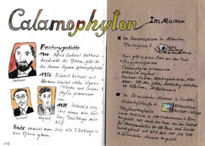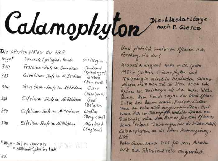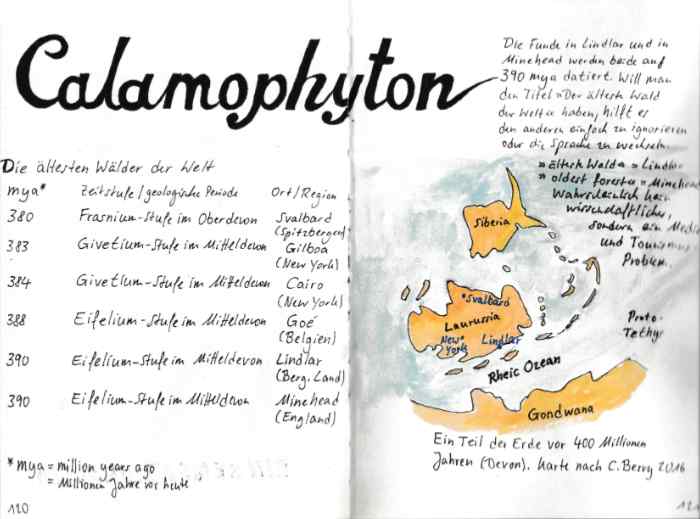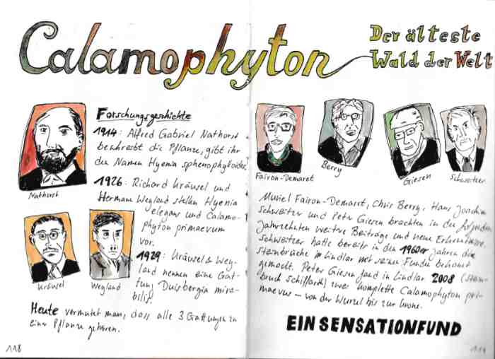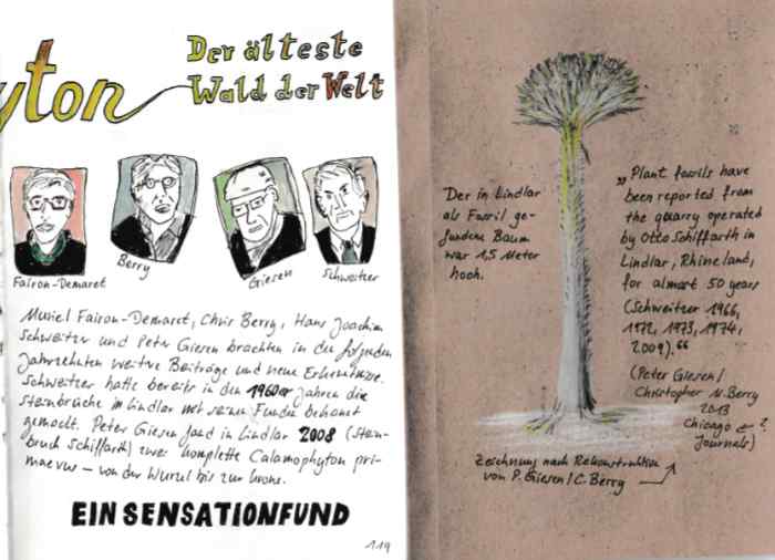 Fast nur am Schreibtisch gezeichnet. Die letzten Tage des Jahres füllte ich dann auch die letzten Seiten des Skizzenbuchs. Ich zeichnete und schrieb ein paar Seiten über den „Ältesten Wald der Welt“ in Lindlar und die Pflanzen „Calamophyton“. Es geht hier um die Forschungsgeschichte.