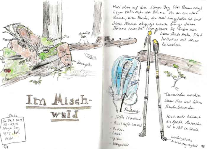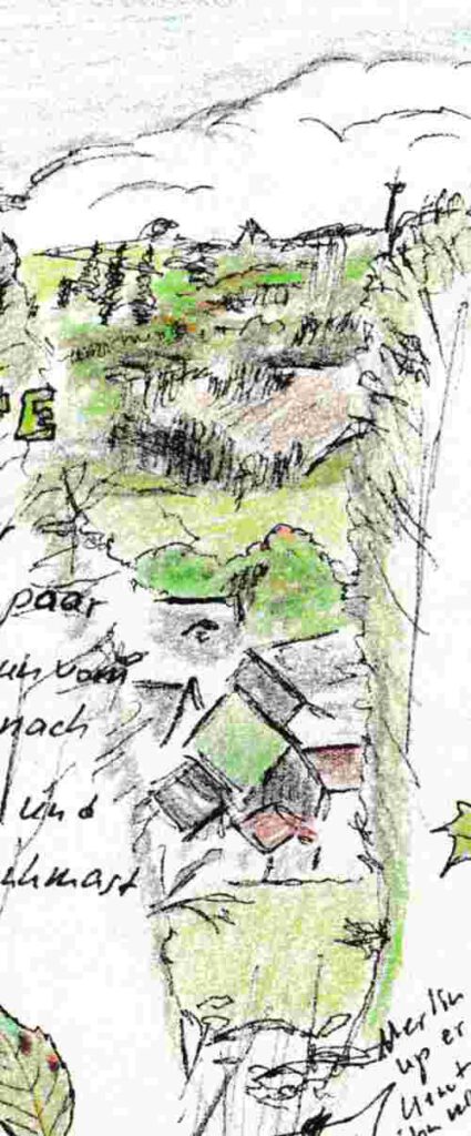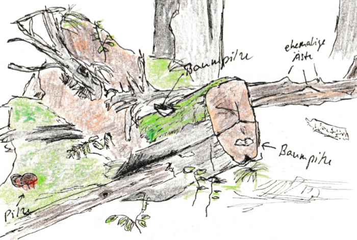 Ich zeichnete etwas auf der 2020-Rodungsfläche oberhalb von Hartegasse. Im Gegensatz zu anderen Rodungsfläche aus dieser Zeit des Fichtensterbens wächst hier immer noch nicht soviel.