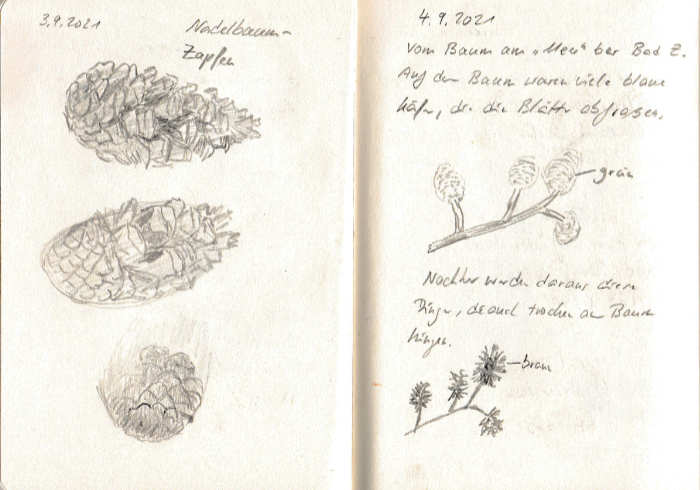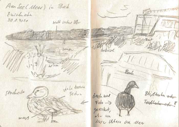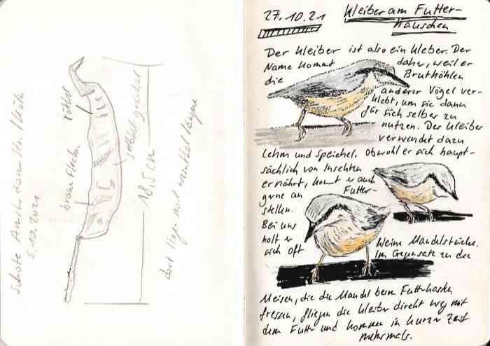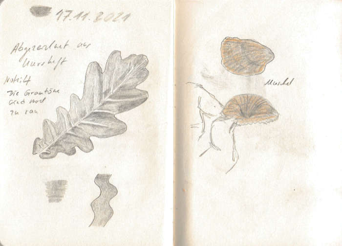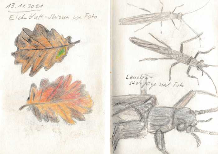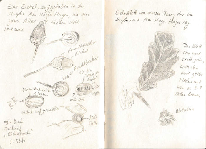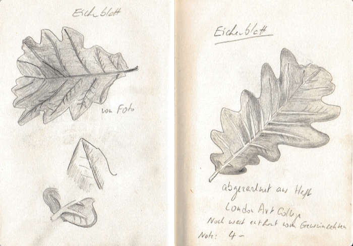 12 Apr. 2026 .cheap A6 Skizzenbuch von sahlerg | Veröffentlicht in: Blog, Field Sketching, Natur zeichnen -- drinnen und draußen, Nature Journaling, Nature Sketching, Zeichnen | 0 Ein einfaches A6 Notizbuch nahm ich im Sommer 2021 mit nach Norddeutschland und machte dort ein paar Zeichenübungen. „Noch weit entfernt vom Gewünschten. Note: 4 -„, schrieb ich an das Eichenblatt rechts.
