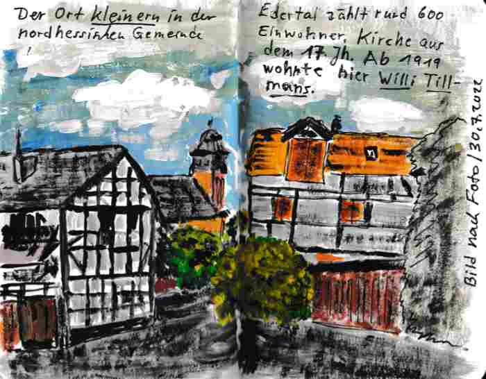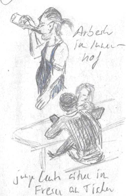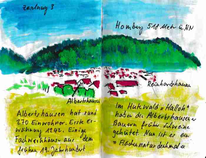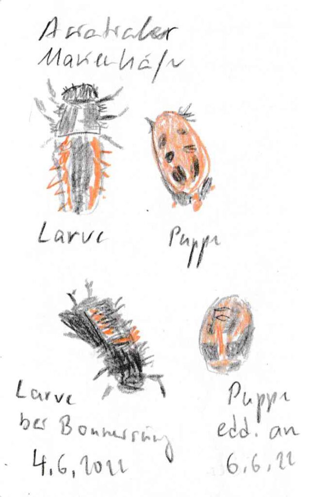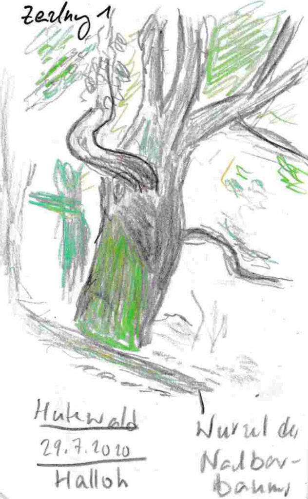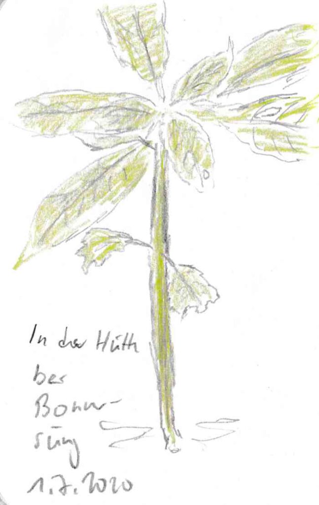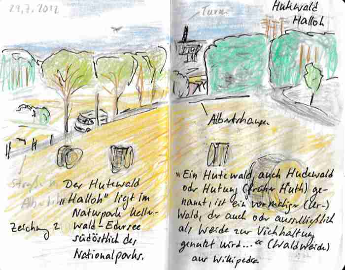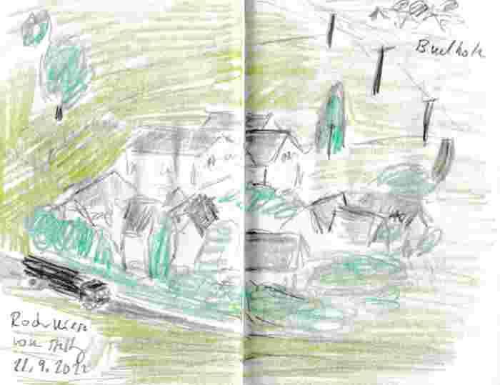 Diese kleinen 9×14 cm Notizbücher passen in jede Hosentasche. 2022 und 2023 habe ich davon drei Stück vollgekritzelt. Oft habe ich unterwegs vor Ort kleine Skizzen gemacht, aber auch noch Fotos (Vögel, Insekten) skizziert.
